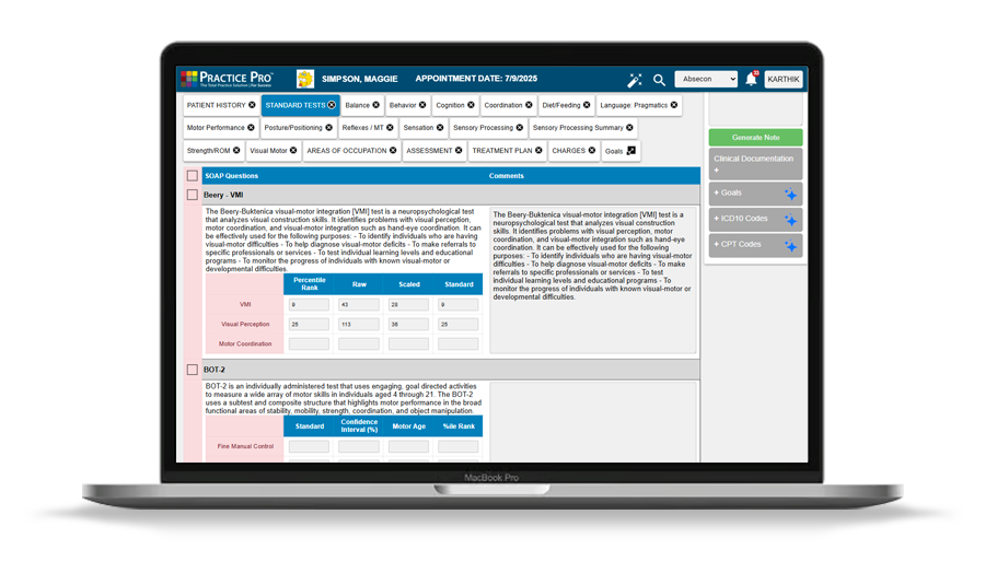 Efficiencies, customizable notes, and evaluation forms tailored to multi-disciplinary templates, goals, outcome tracking, and customizable templates.